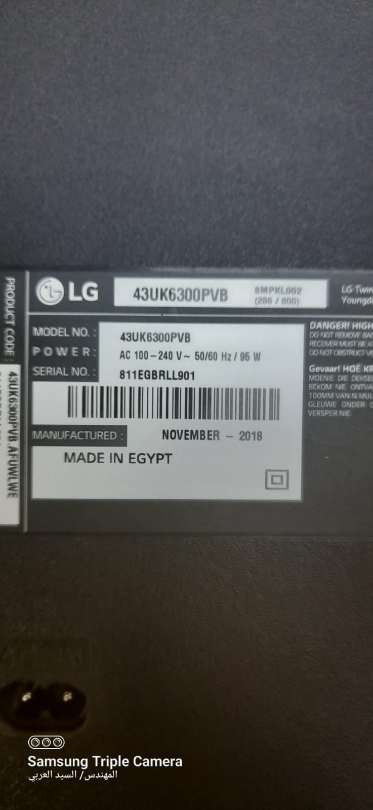 حوض ال جي 43 بوصه موديل LG 43UK6300PVB بدون البوردات