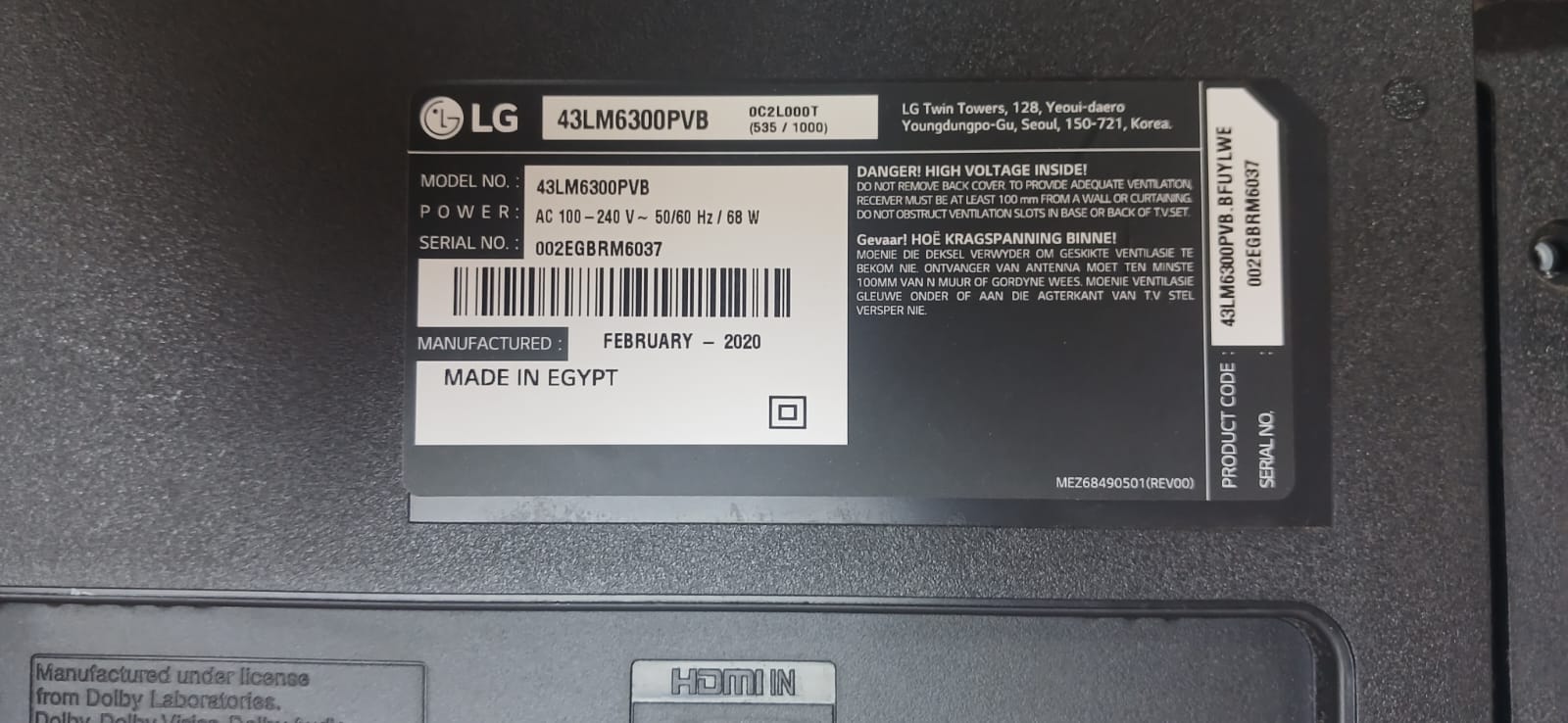 حوض كامل ال جي 43 بوصه موديل LG 43LM6300PVB بدون البوردات