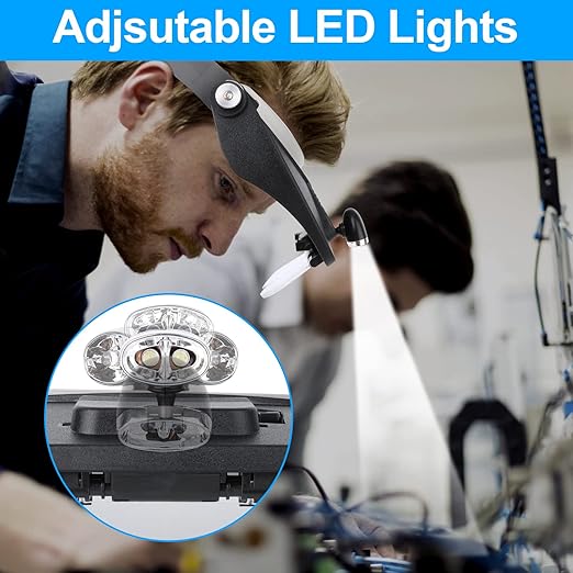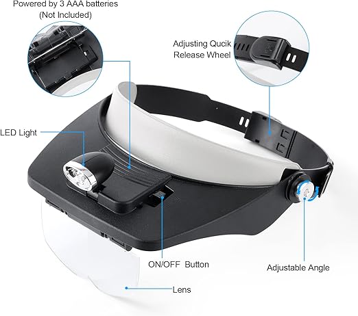 عدسة مكبرة تثبت على الرأس مع ضوء ليد بقوه تكبير1.2X,1.8X, 2.5X , 3.5X