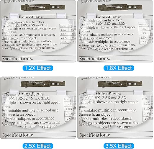 The Portable Magnifying Lamp comes with a set of 4 lens with different magnifications (1.2X ,1.8X , 2.5X , 3.5X)